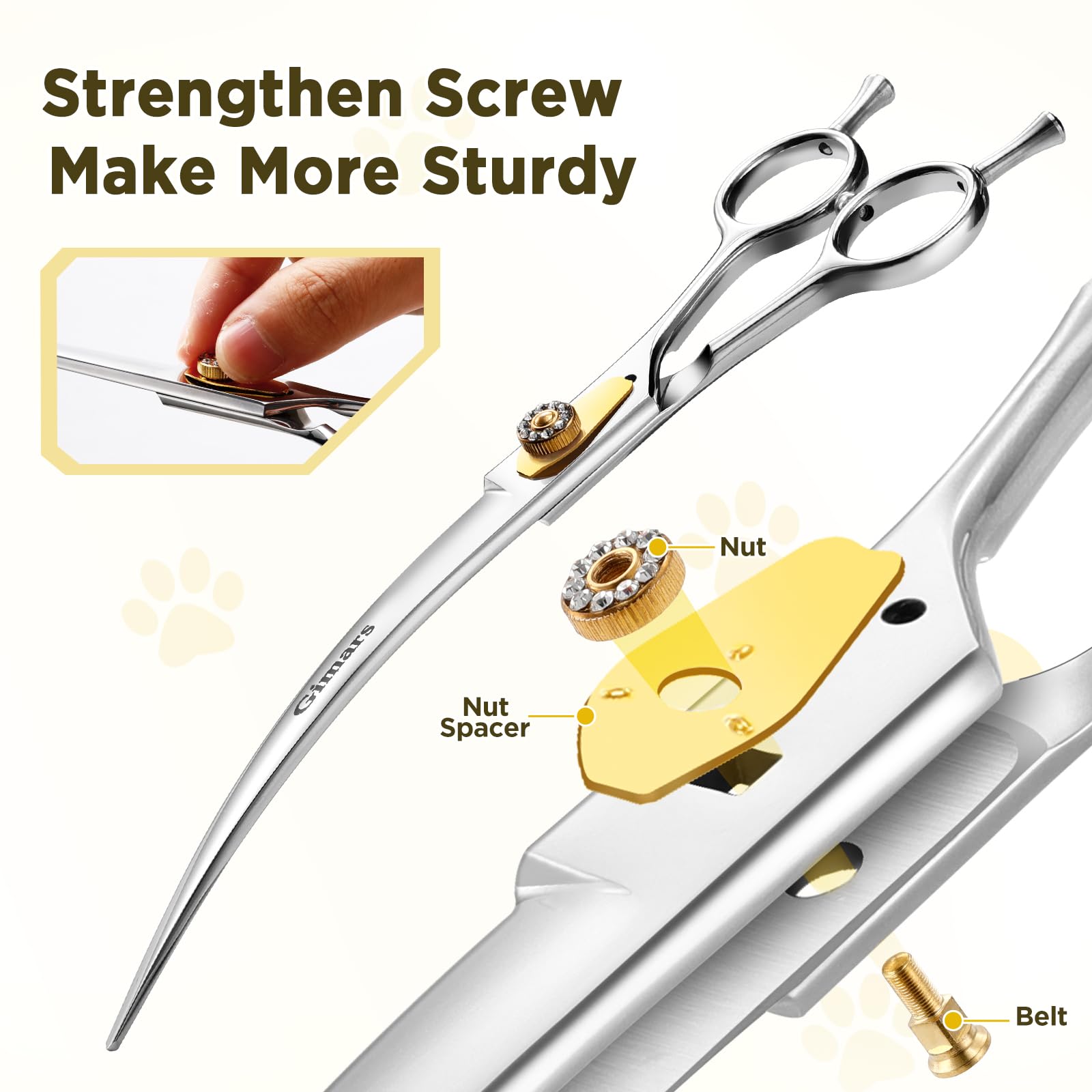 - 8-Inch Ergonomic Design: 8-inch pet grooming scissors are ideal for pets of all sizes. The arc-shaped scissors maintains perfect weight and balance, providing precise and clean grooming results. These curved shears are perfect for both beginners and professional groomers, as well as for at-home DIY grooming.