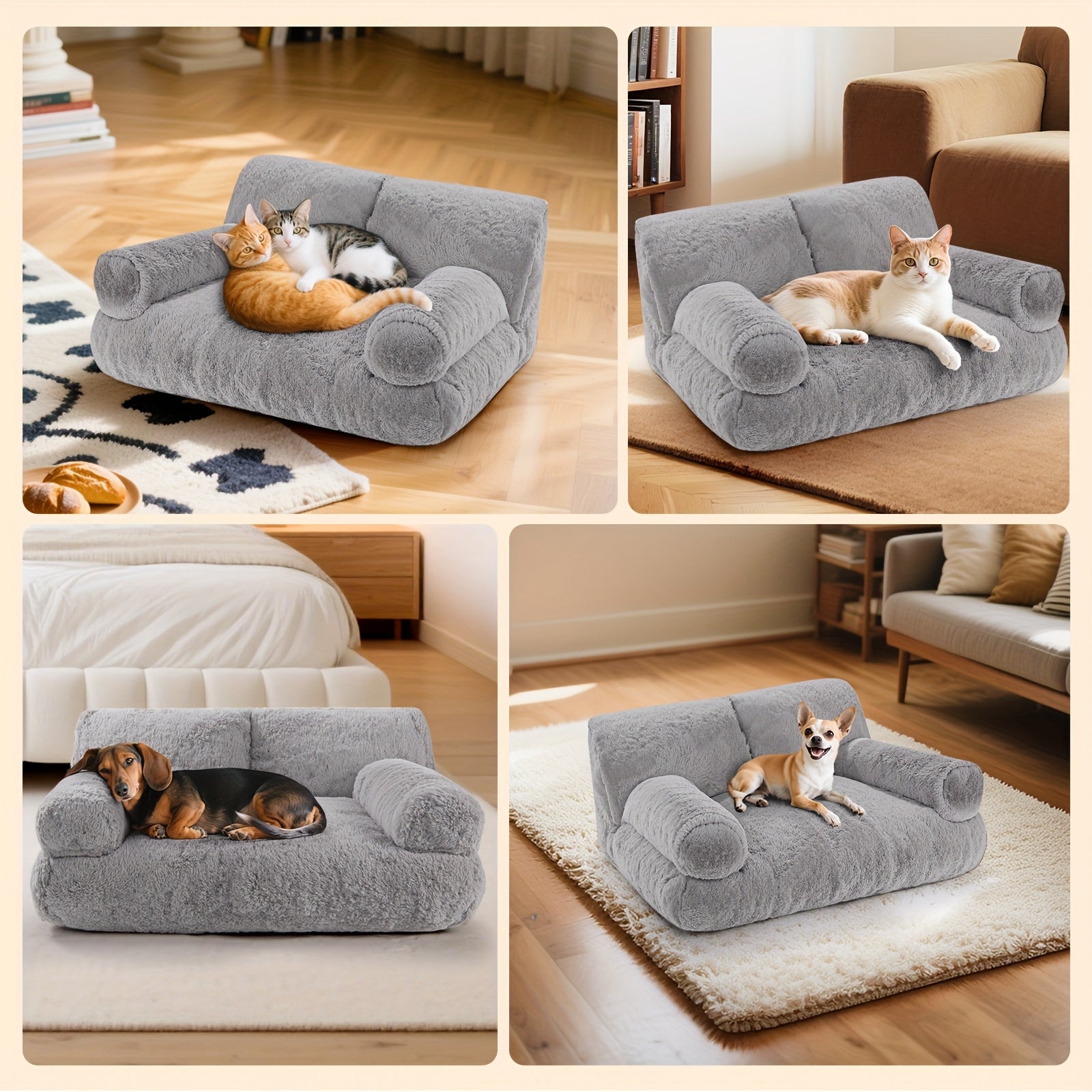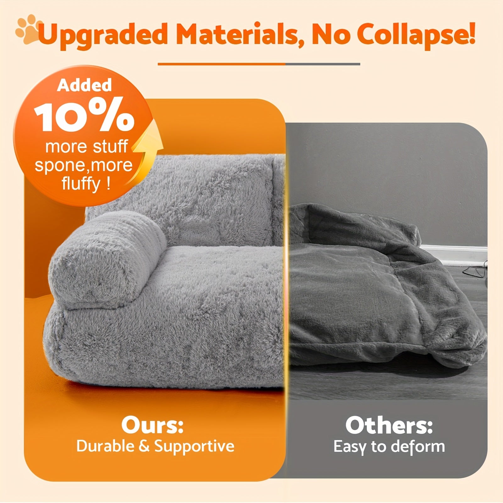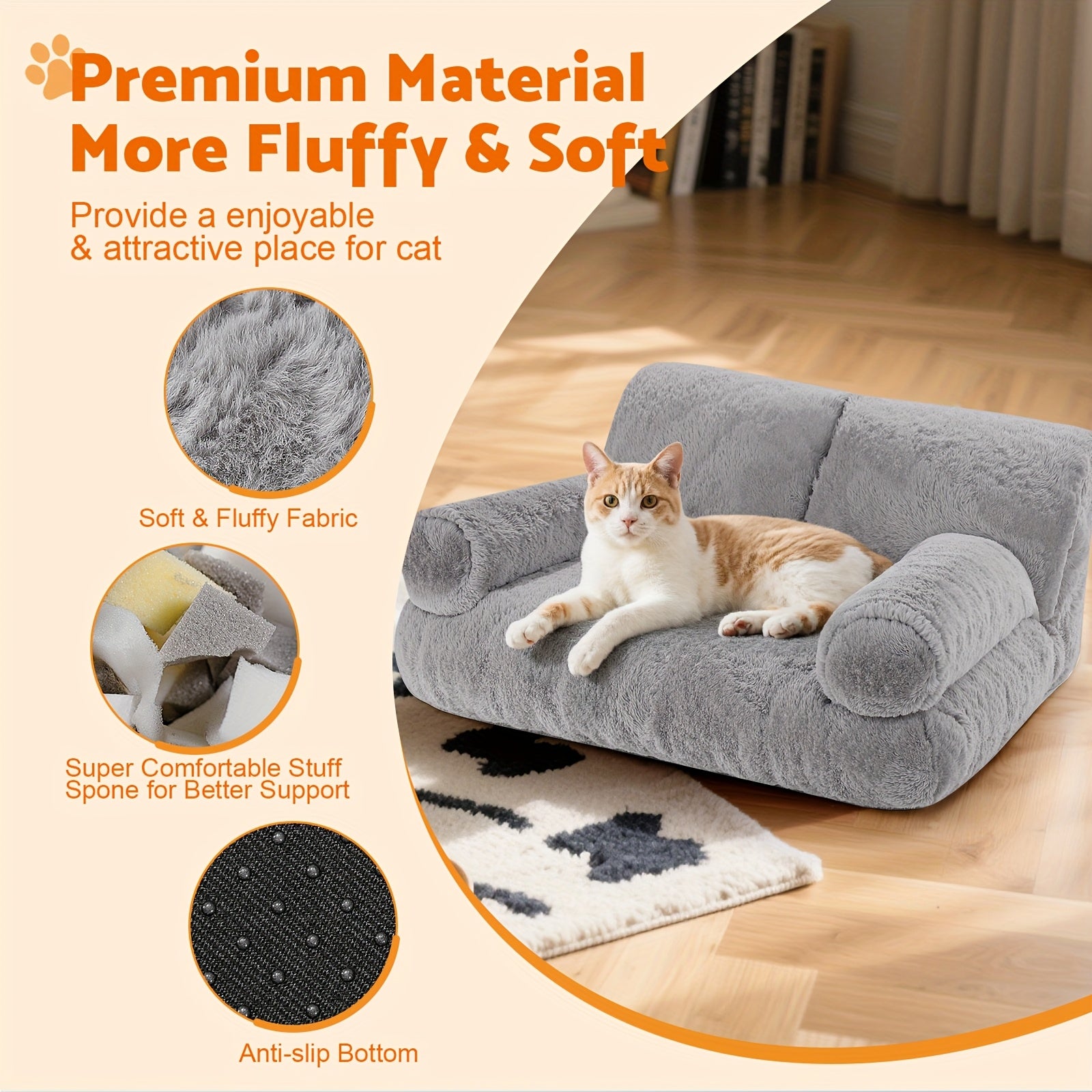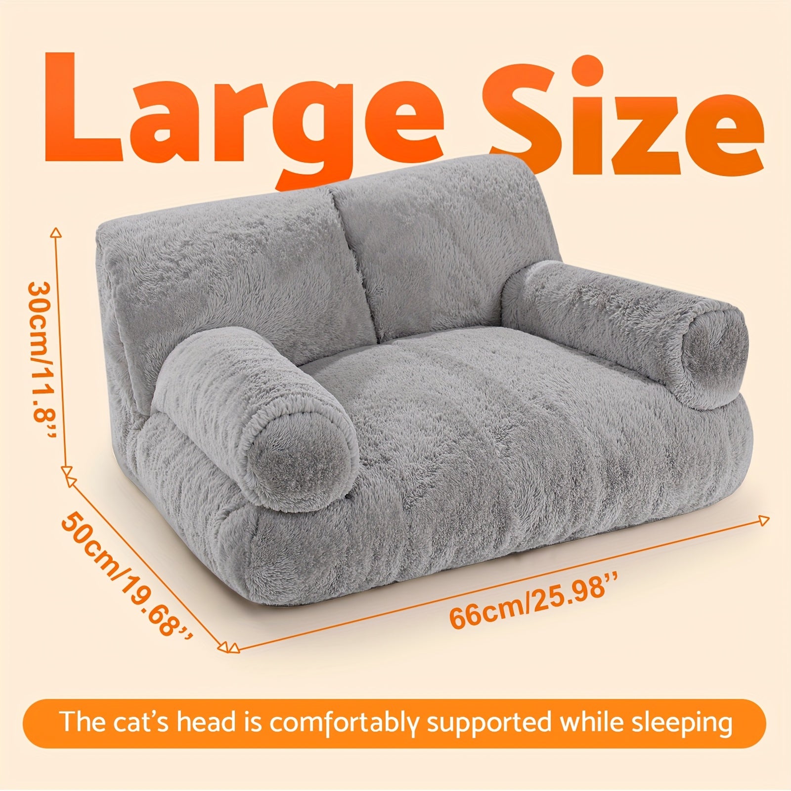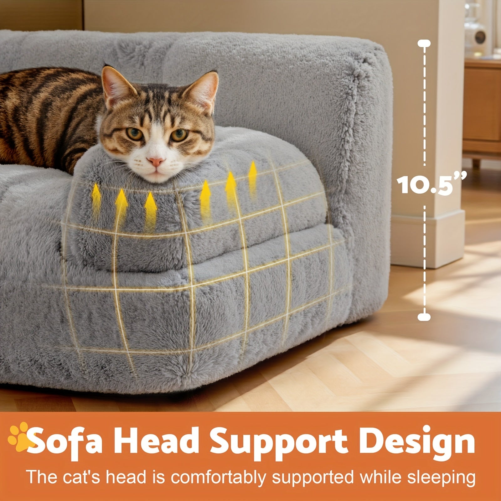 - 【Cozy & Comfort with Premium Material】Designed with a thoughtful 2:1 blend of chopped foam and super soft fuzzy faux fur, our pet couch provides optimal support while maintaining plush comfort.Made with super soft faux rabbit fur material, this pet couch is warm and comfortable, suitable for cats in every season.